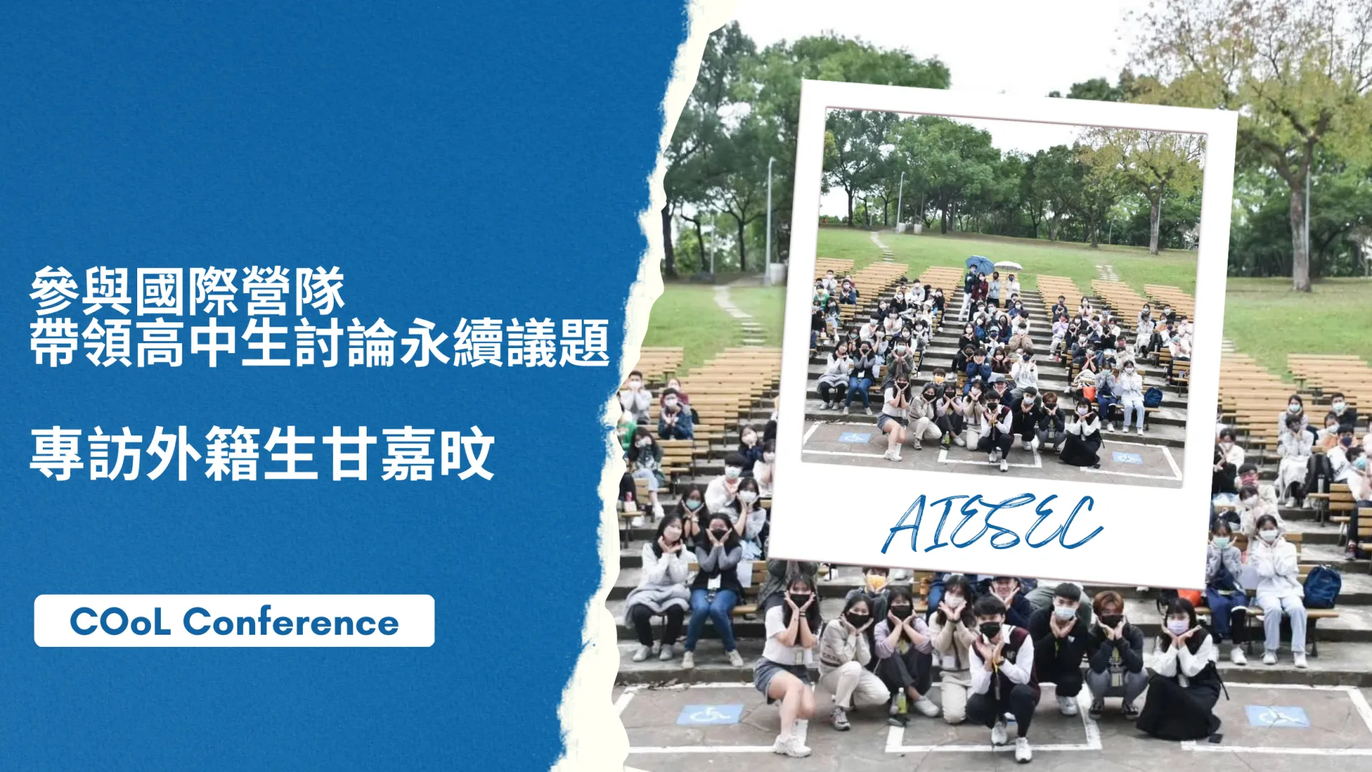 AIESEC 是國際的非營利組織,在全球各大專院校中設有分會,組織主要關注世界議題、領導力及管理等方面,希望提供各國青年交流的機會。目前台灣共有 13 個校園分會地點,各個分會皆會舉辦活動,鼓勵高中生及大學生一同共襄盛舉,而此次甘嘉旼參加的營隊,便是希望從在地議題出發,連結聯合國 2030 永續發展目標(Sustainable Development Goals, SDGs),邀請高中生完成專業商業提案,並練習在全英文的環境開口說英文。