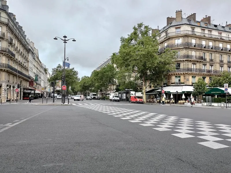 ▲巴黎街景,大馬路兩側為人行道。/潘正陽提供。