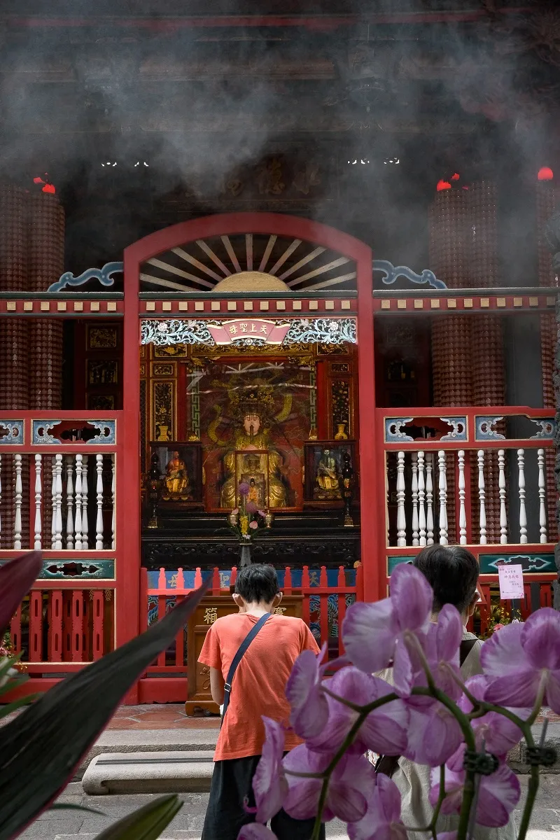 ▲A person pays their respects in Longshan Temple during the Ghost Month Festival. Photo: Isis Calderon