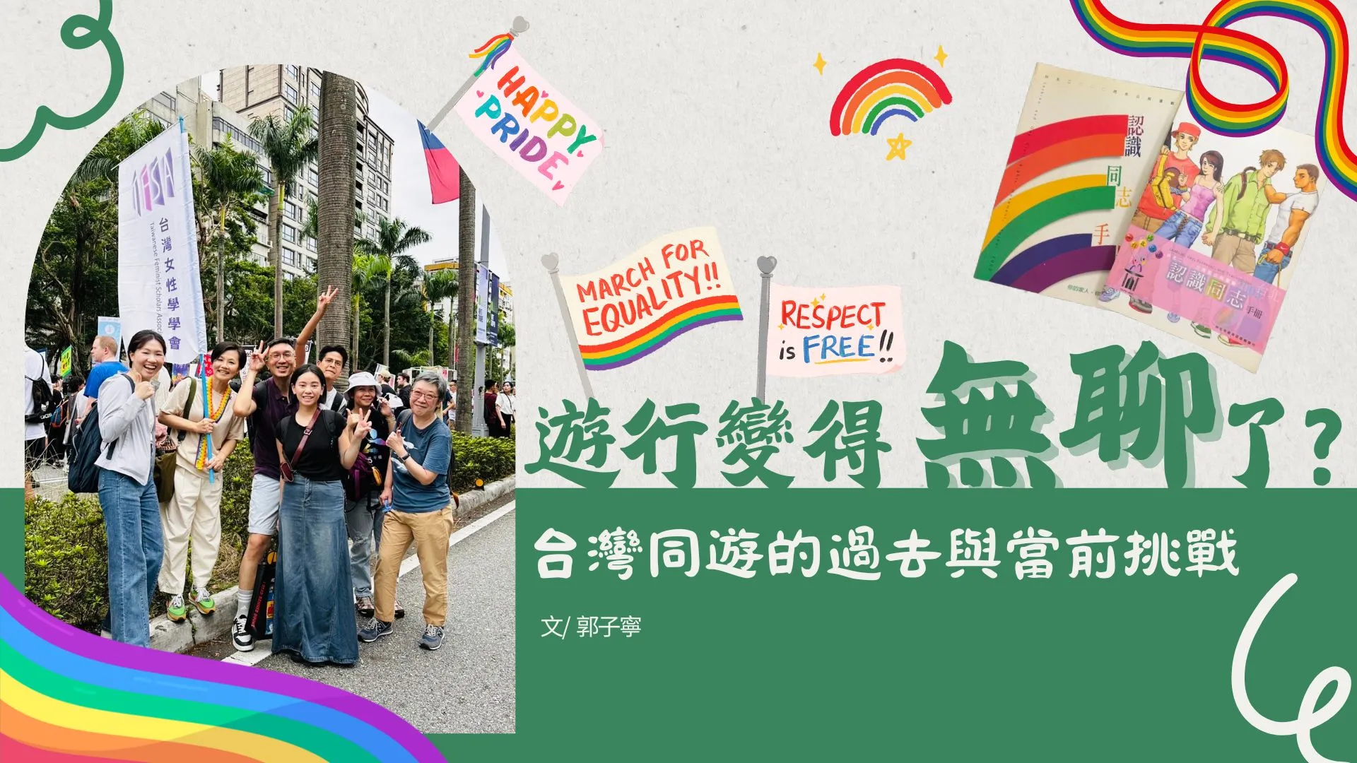 今年臺灣同志遊行邁入第二十二個年頭,此次遊行除了有政大學生會與陸仁賈社等學生團體的共襄盛舉外,現為政大台文所的陳佩甄副教授也參與了此次的遊行。