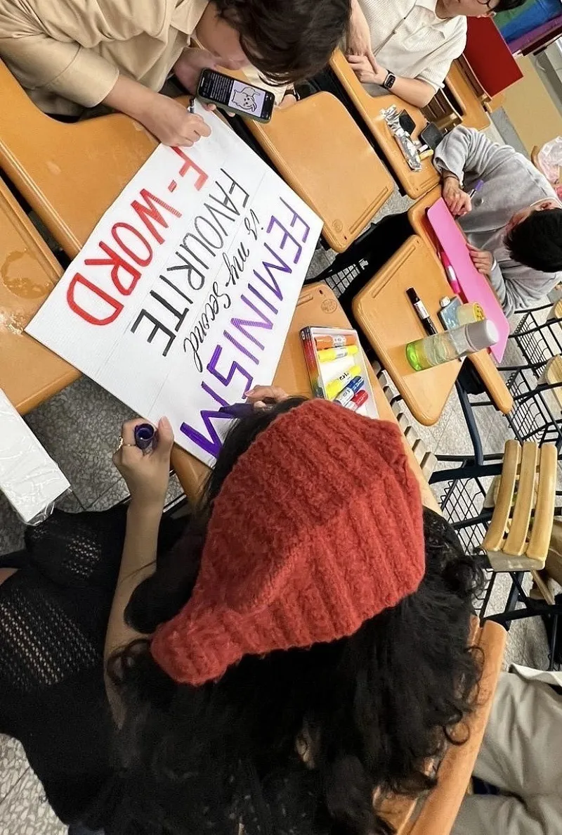 「我們分成兩組,一起討論要在標語上傳達什麼訊息,」Soolim回憶道,大家聚在一起集思廣益,繪製標語牌與道具,討論即將到來的遊行。