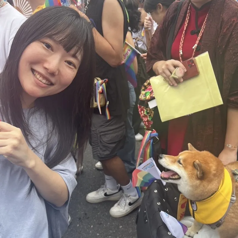 而對於Soolim而言,最令她印象深刻的是現場的寵物:「看到貓狗戴著彩虹裝飾參與遊行真的很可愛,我們還跟穿著遊行裝扮的狗狗合影了。」