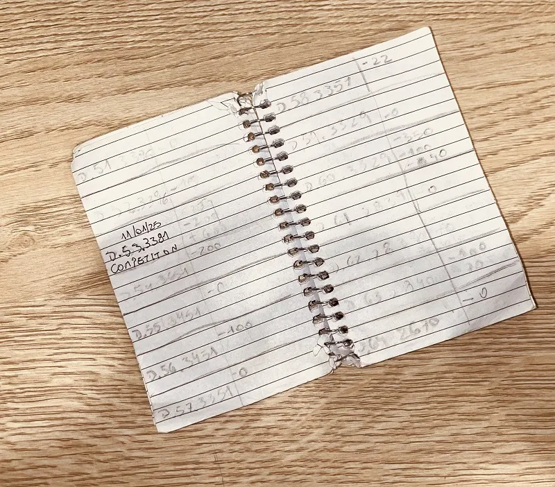 ▲小筆記本中寫滿的數字都是Diaz每天的帳目花費和結餘。