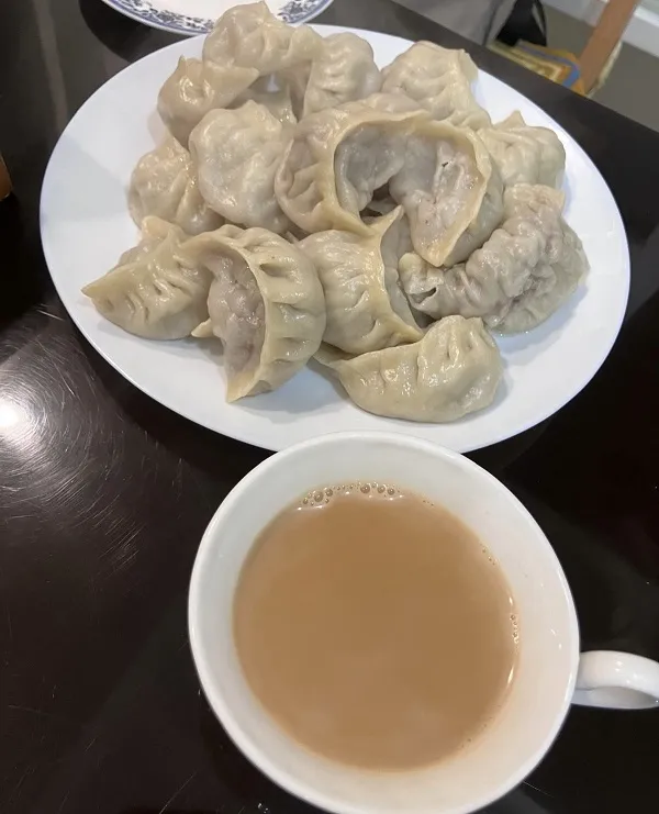 ▲Momo (yak dumplings) with traditional Tibetan butter tea