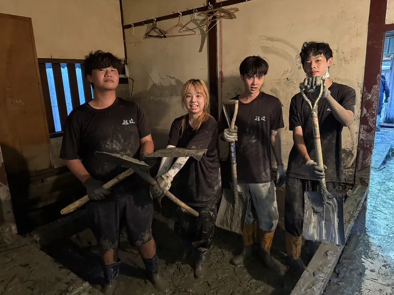 A first-hand reflection from 紀淵懷 (Polaris), a Taiwanese NCCU student who joined during the three-day Teacher’s Day break, encapsulates this emotional unity. As soon as news of the disaster broke, he rushed to buy a pair of boots, a shovel, and a ticket to Hualien. “The mud felt like half-set concrete, sticky and thick,” he recalled. “Every shovelful was a struggle, and my boots kept getting sucked off my feet.” Polaris joined a team of volunteers he met that very morning, spending an entire day clearing out a single home. Later, a local guesthouse owner offered Polaris and his team free accommodation, a gesture of kindness that mirrored the solidarity spreading through the community.