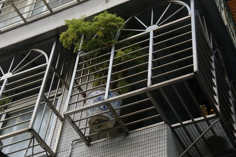 Taipei’s window cage culture gets at the heart of this collision of opposites. They are part of the communal whole, yet defined by their separation from that whole. Every window cage brings a different flavour — with clothes drying, lanterns hanging, and metal worked into different patterns and colours, to various degrees of rust and ruin. Most importantly however, these cages are defined by their plants. Each cage is an artistic portrait of urban life.