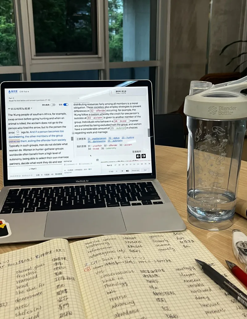 不同以往,相較更偏向於興趣技能學習的日語與韓語,有交換名額和志願序的目標在前,讓準備雅思英檢比以往都來得更有壓力和倍感焦慮,除此之外,法律系的課業、社團的經營和家教打工等繁雜的日常和時間安排,都不斷逐漸洪慈憶心裡的不安和焦慮,甚至到了考試的前一天,在心裡默默希望考試能因為當時颱風的風雨而取消,不過努力中有回報,洪慈憶透過overall7.0的成績,分發到美國維吉尼亞州大學,即將在下學期出發美國。